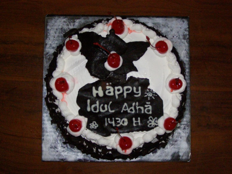 Bikin black forest buat dimakan sendiri kebetulan pas barengan Idul Adha th 2009, maaf ya karena bikin blognya baru jadi foto yang saya aplod sekarang ini adalah foto lama, hasil dapur sebelum punya blog hehehehe....