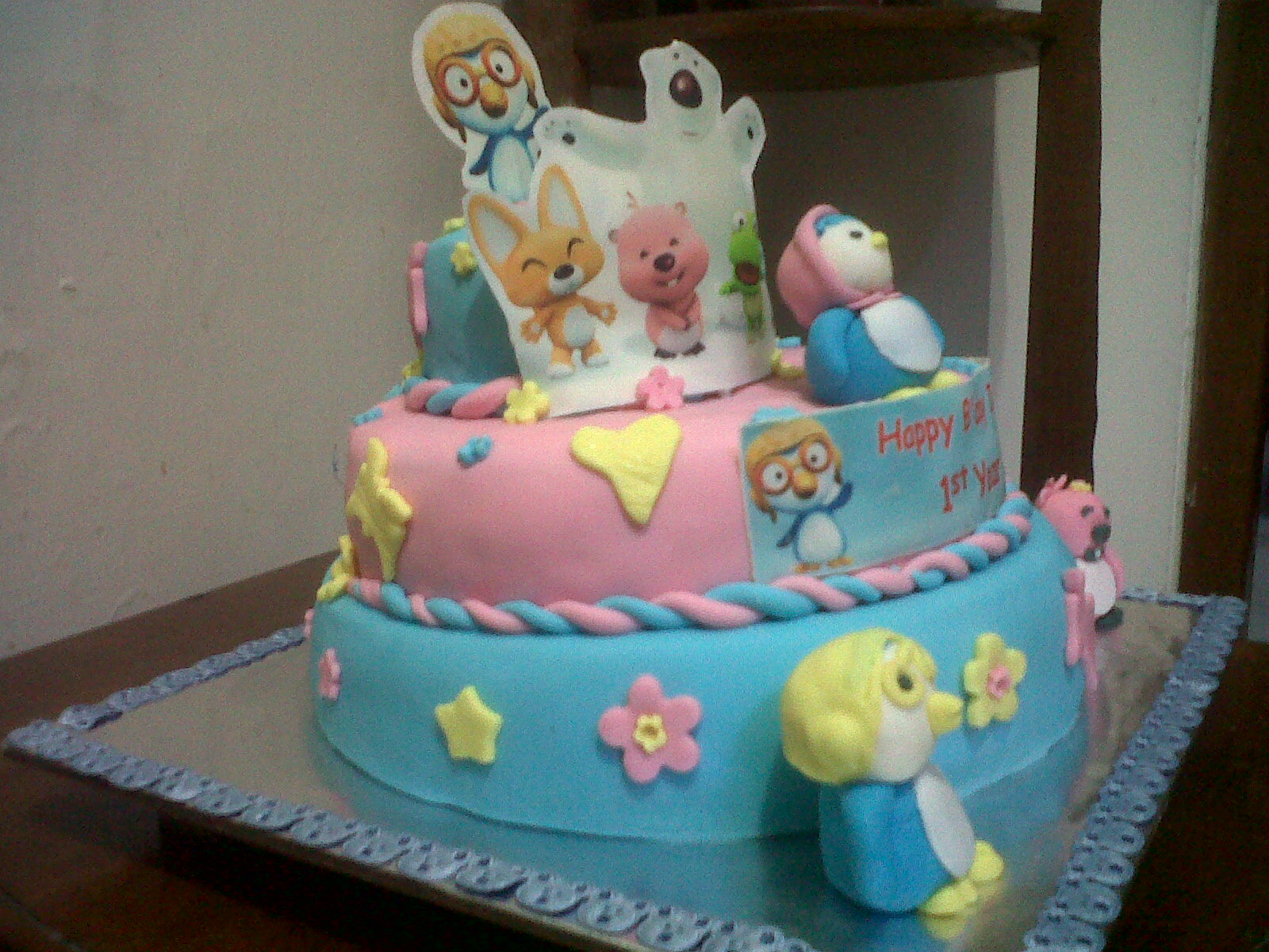 Sekarang pesen pororo bdck buat Ivana anaknya ultah ke 1, yang susun, aku pake edible image pesen di ci' Ivonne (Famini )