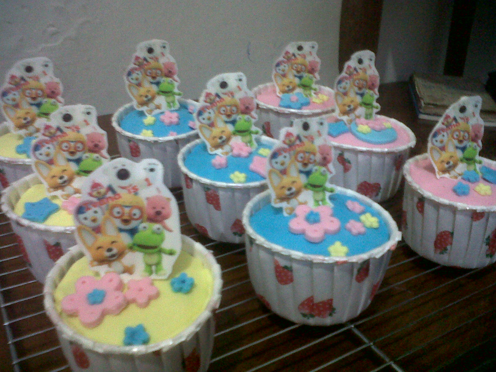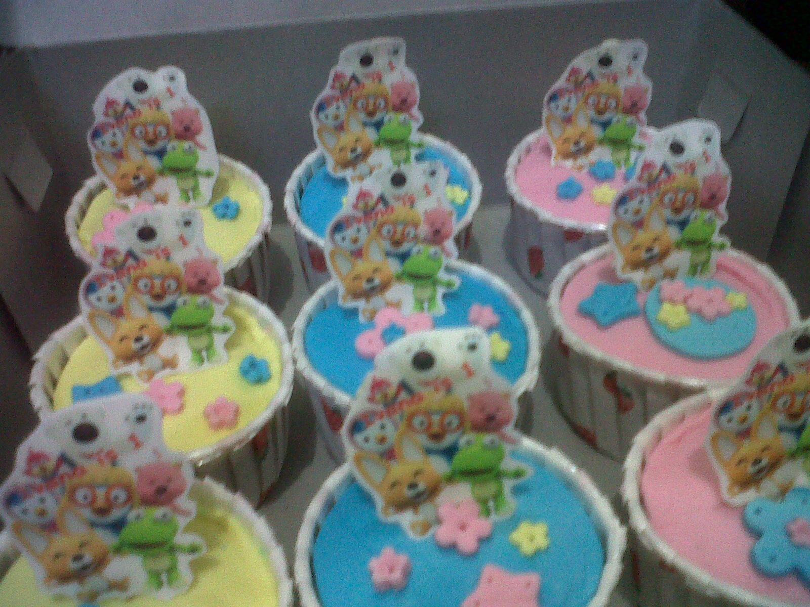 9 cupcake cover fondant, pake standing edible, gambarnya pororo juga.