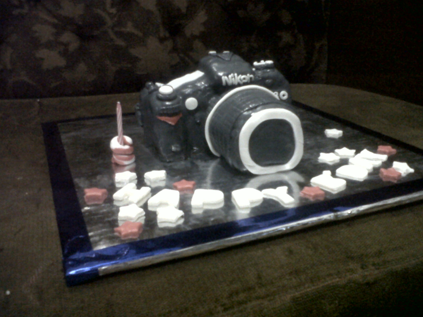 Pesanan Ira temen SD dulu, buat ultah suaminya yang hoby fotography. Request camera cake Nikon D80. Base cake brokus coklat.